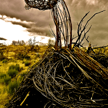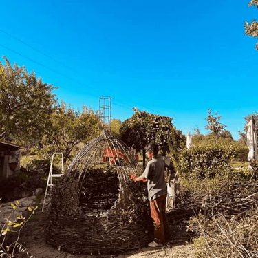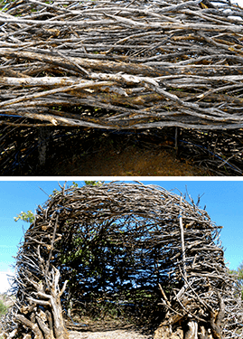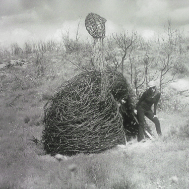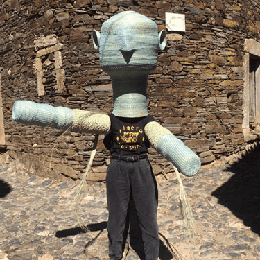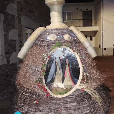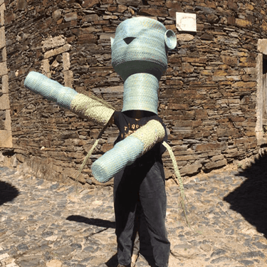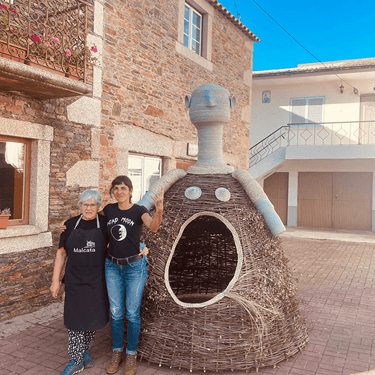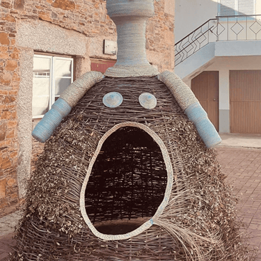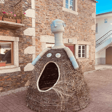 Construída primeiro em papel, foi evoluindo para o tecido, linha e depois giestas, raízes e carvalhos queimados.