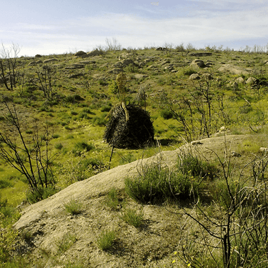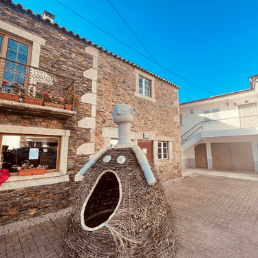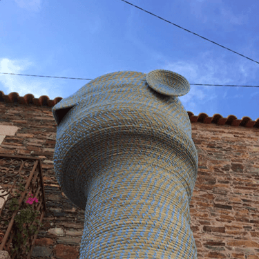Esta grande escultura habitou a pequena praça da aldeia da Malcata durante 6 meses e foi devolvida à Natureza a 1 de Maio de 2022, dia em que a avó Rosa faria 93 anos. Volta assim às terras das irmãs, próximo da aldeia do Espinhal. No entanto fica na Malcata, no atelier onde encontramos a Bracearte, uma mini Mirschquina totalmente feita em bracejo e fio azul que será a fiel depositária de todas as histórias do passado e do presente que envolvem estas obras, estabelecendo um diálogo entre as aldeias da Malcata e o Espinhal, seus habitantes e visitantes.